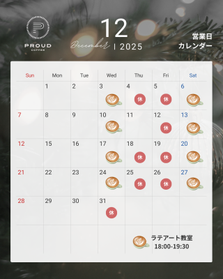 少しずつ空気が冬の香りになってきましたね。12月の営業日カレンダーをお知らせします。